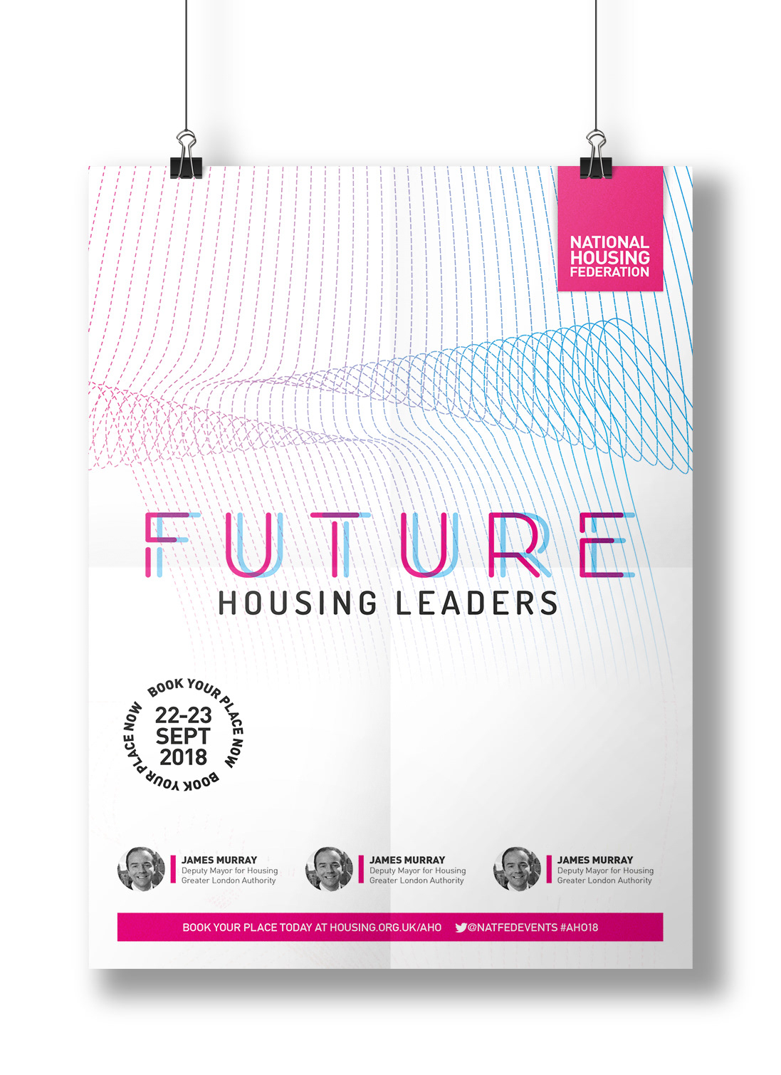 The National Housing Federation approached me to create a branding project for an exciting new exhibition. The creative was to appeal to younger, pre-30 year old attendees, who would forge the future direction of housing associations.