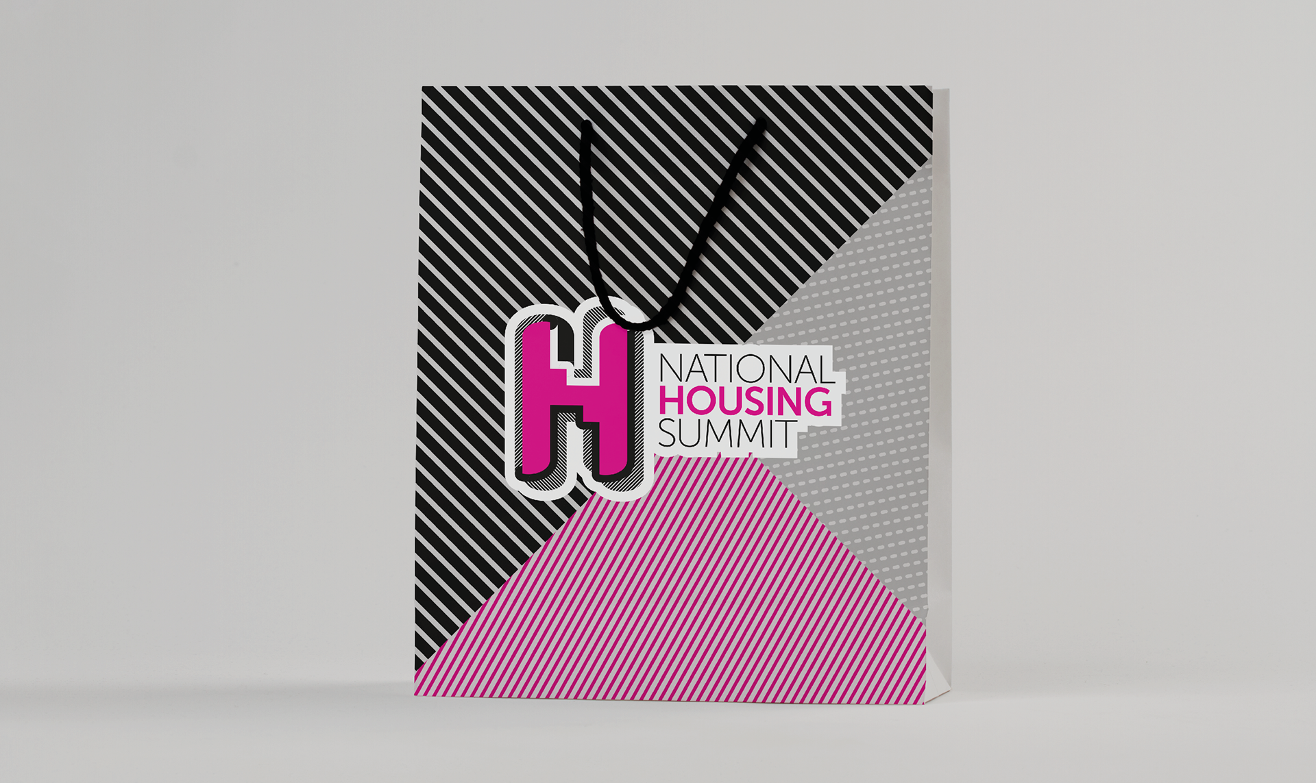 I was tasked with creating a new identity for the NHF's largest annual event - the National Housing Summit. The result was an identity centred on the letter 'H', which illustrated the many directions of attendees coming together to attend the event.